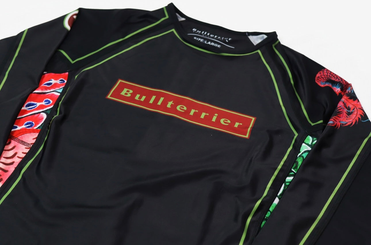 The Bull Terrier "Houou" model, which is part of the new series, is now available as a rash guard.